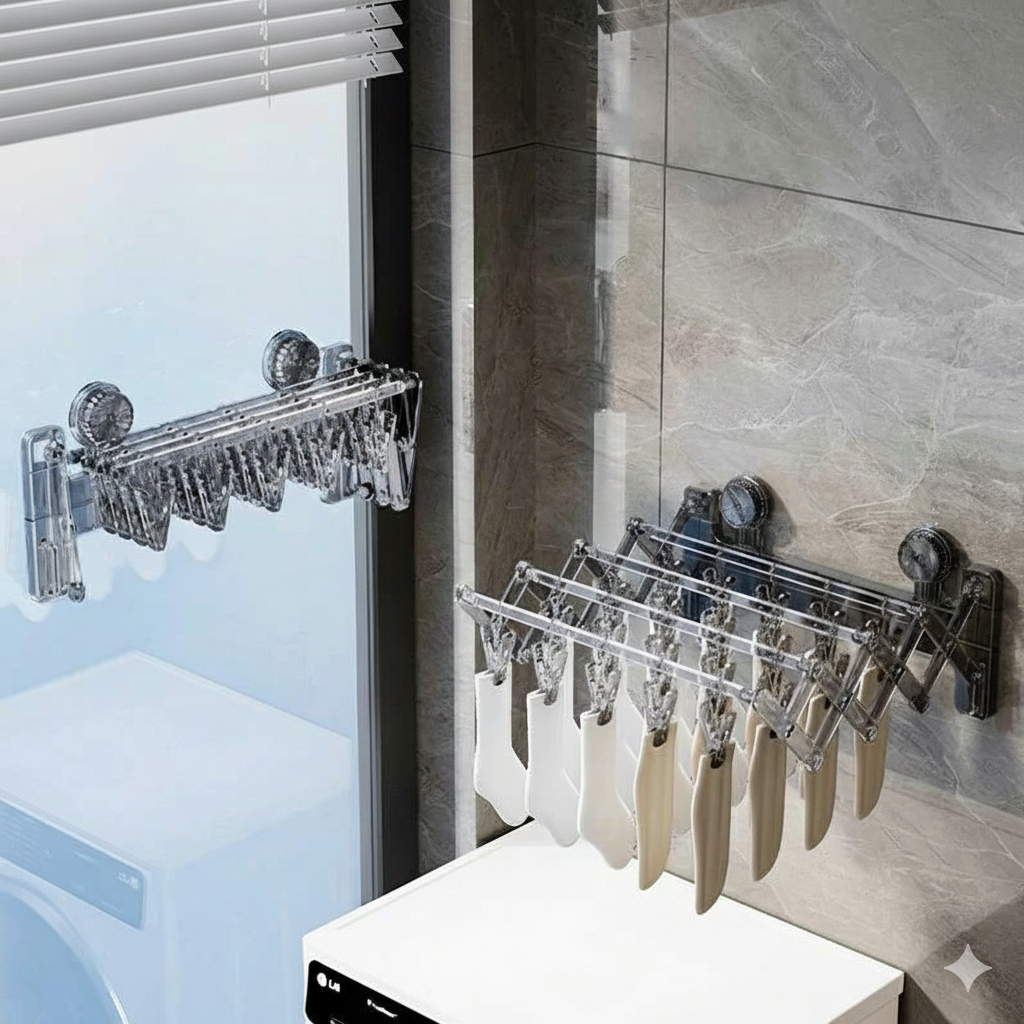 وداعًا لقلق الغسيل! منشر داخلي من الأكريليك يثبت على الحيطة أو الزجاج بدون مسامير.